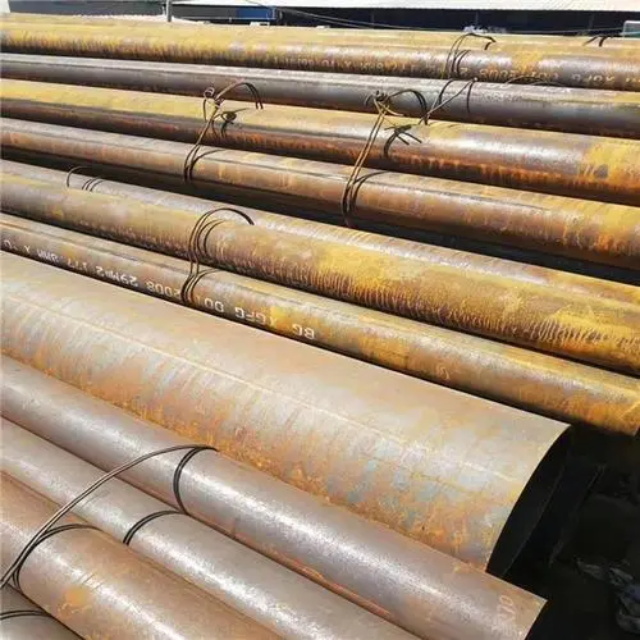 雅安gb3087无缝钢管要用钢锭或实芯管料经破孔制成毛管,随后经热扎、冷轧或冷拨制成。雅安gb3087无缝钢管在中国钢管业中具备重要的位置。据不完全统计,我国目前无缝管生产公司约240多家,无缝管机组约250多套,年产能力约450多万吨。从规格看,雅安gb3087无缝钢管的原料是圆管坯,圆管胚要经过切割机的切割制作成长短约为1米胚料,并经输送带送至溶炉内加温。钢坯被送进溶炉内加温,温度约为1200℃。燃料为氢气或乙炔。炉内温控是关键性的难题.圆管坯出炉后要经过压力穿孔机开展穿空。一般较常见的穿孔机是锥形辊穿孔机,这类穿孔机生产效率高,产品品质好,破孔扩径量多,可穿多种钢种。破孔后,圆管坯就先后被三辊斜轧、连轧或挤压。挤压后应脱管定径。定径机根据锥形钻头高速运转入钢胚打孔,产生钢管。钢管内径由定径机钻头的直径长短来决定。钢管经定径后,进入冷却塔中,根据喷水冷却,钢管经冷后,就要被校直。钢管经校直后由输送带送往金属探伤机(或压力试验)进行内部探伤。若钢管内部有裂痕,气泡等问题,将被检测出。钢管质检后还要通过严格手工选择。钢管质检后,用漆料喷上编号、规格、生产日期等。并由吊车吊入仓库里。
